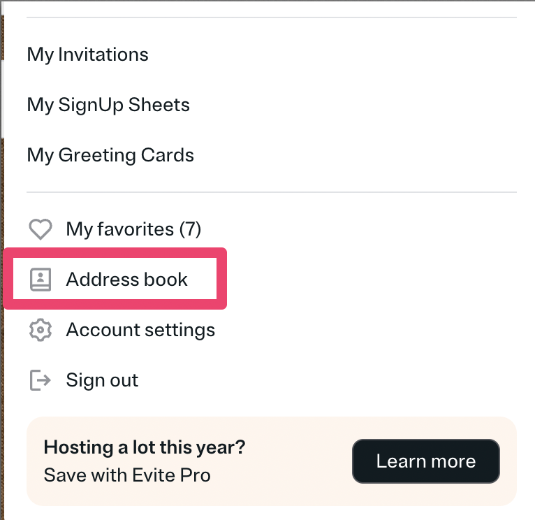 To add or edit email addresses in your **Evite Address Book**, follow the steps below: