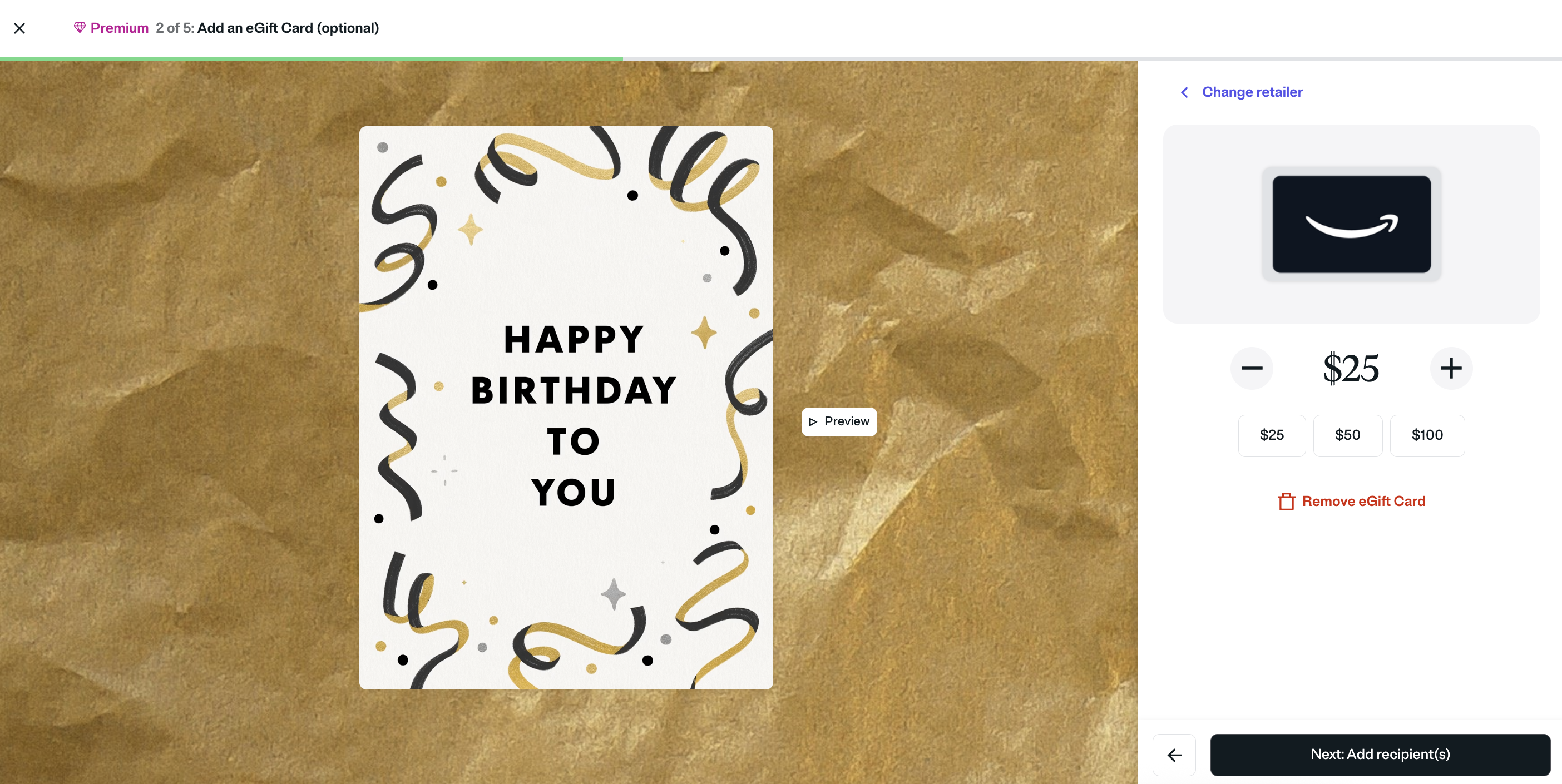 7\. In Step 2, you can change the retailer and amount for the eGift card.&#x20;