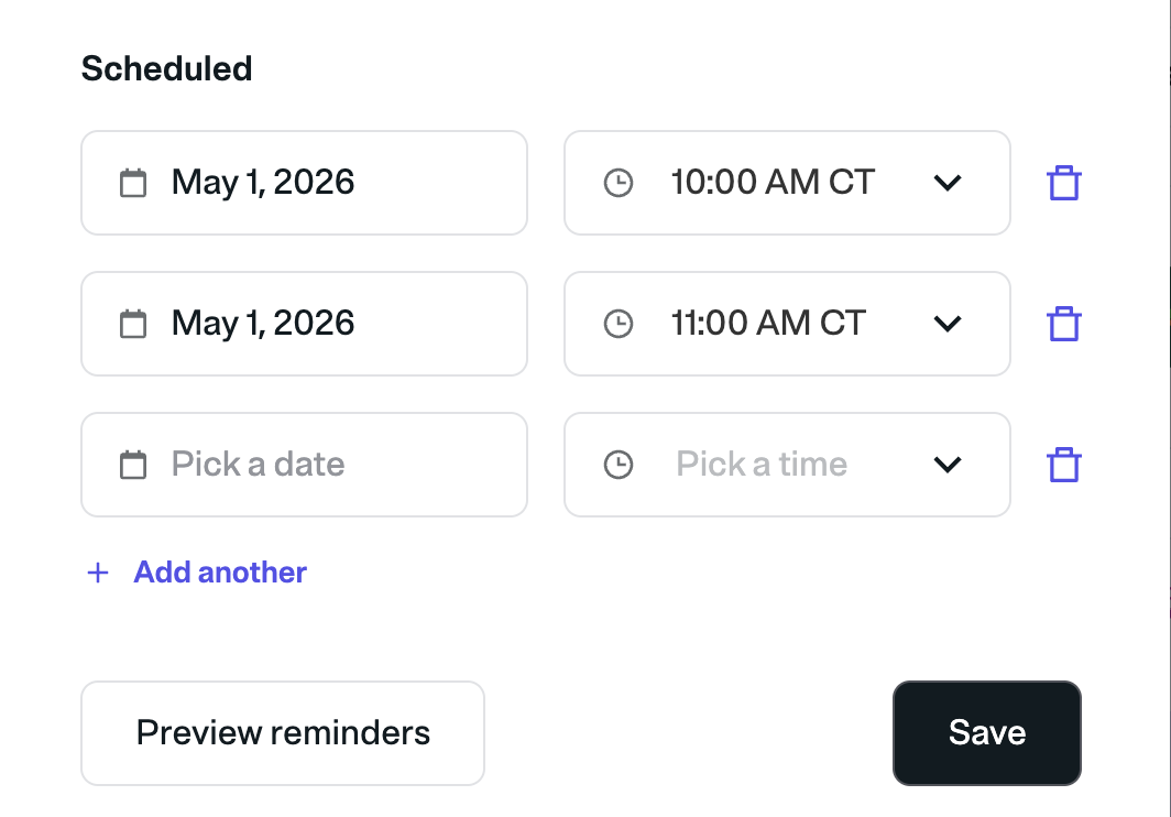 7. Choose the date(s) and time(s) you’d like reminders sent.