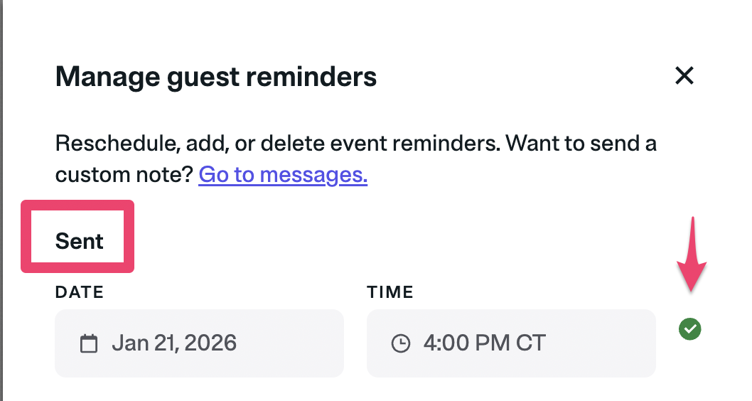 * Reminder delivery status can be viewed via the checkmark indicator by returning to your settings on the host dashboard.