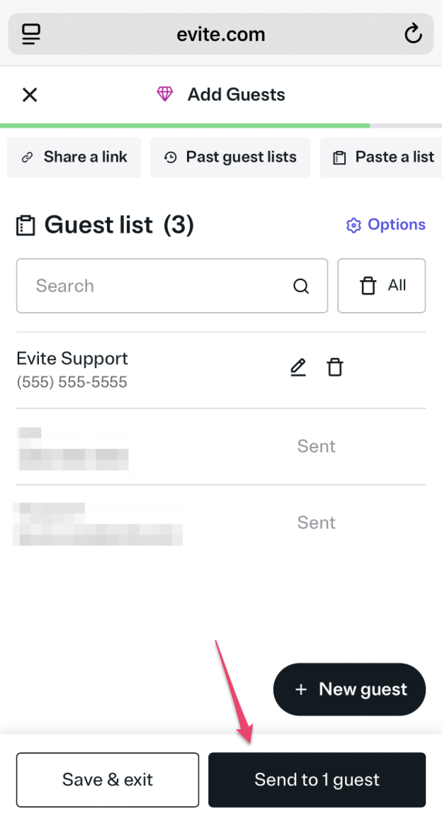 9. Select **Send to xx Guest** when you're ready to send the invitation.