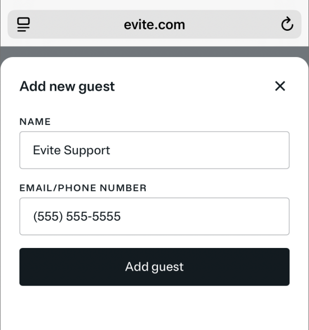 1. Log into your account on [Evite.com](https://evite.com/) from your mobile web browser.
